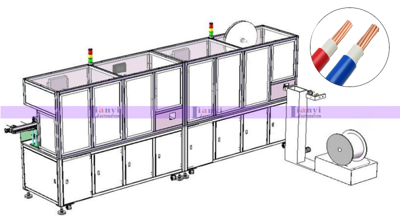 1、線束自動(dòng)輸入:將需要加工的線束放置在設(shè)備輸入口,通過(guò)傳送帶、機(jī)械手、輸送裝置等載具將線束送入設(shè)備進(jìn)行處理。